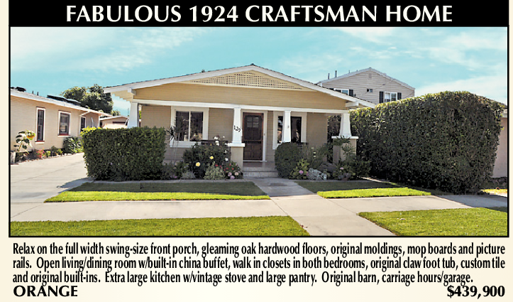 Relax on the full width swing-size front porch, gleaming oak hardwood floors, original moldings, mop boards and picture rails. Open living/dining room w/built-in china buffet, walk in closets in both bedrooms, original claw foot tub, custom tile and original built-ins. Extra large kitchen w/vintage stove and large pantry. Original barn, carriage hours/garage. ORANGE $439,900