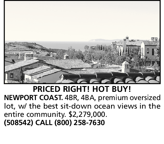 NEWPORT COAST. 4BR, 4BA, premium oversized lot, w/ the best sit-down ocean views in the entire community. $2,279,000. (508542) CALL (800) 258-7630