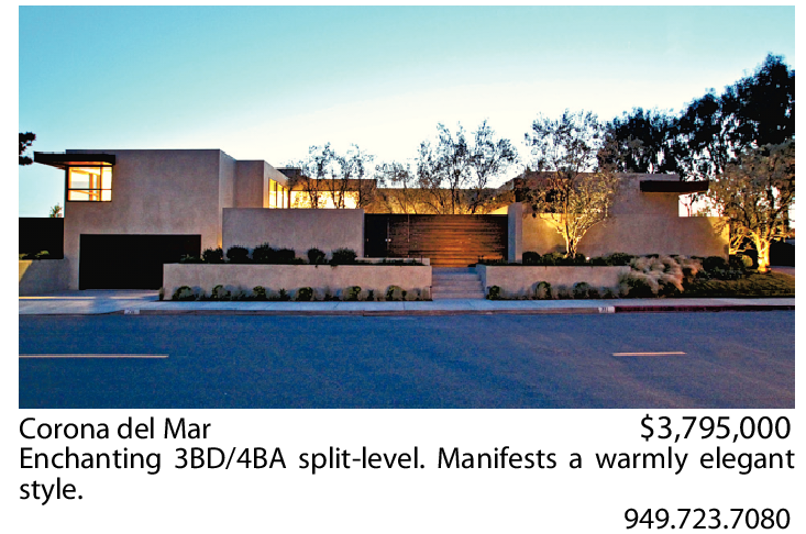 Corona del Mar $3,795,000 Enchanting 3BD/4BA split-level. Manifests a warmly elegant style.
