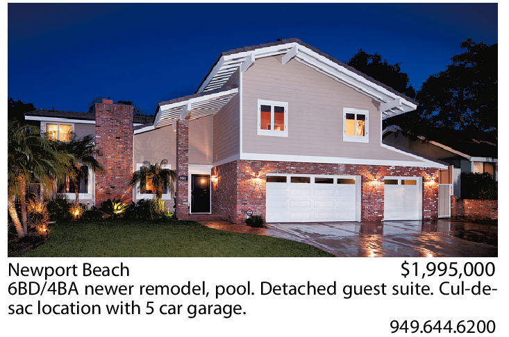 Newport Beach $1,995,000 6BD/4BA newer remodel, pool. Detached guest suite. Cul-desac location with 5 car garage.