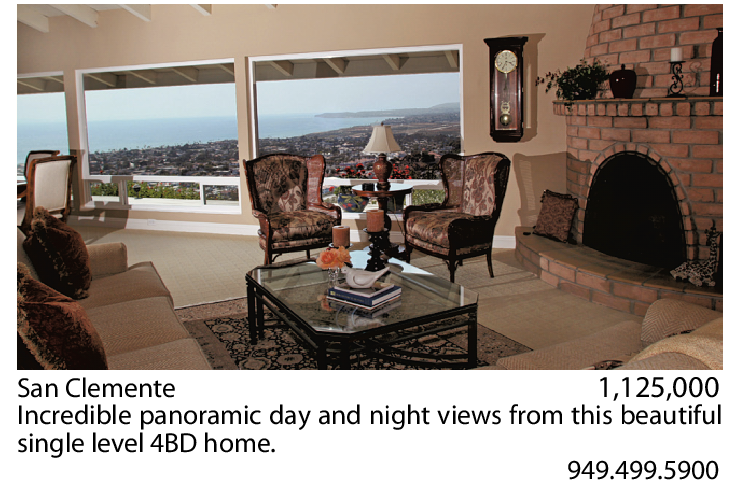 San Clemente 1,125,000 Incredible panoramic day and night views from this beautiful single level 4BD home.