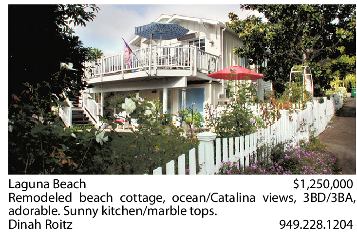 Laguna Beach $1,250,000 Remodeled beach cottage, ocean/Catalina views, 3BD/3BA, adorable. Sunny kitchen/marble tops. Dinah Roitz 949.228.1204