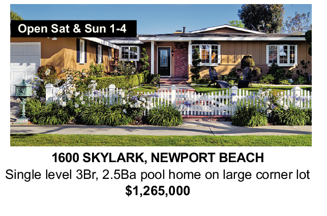 1600 SKYLARK, NEWPORT BEACH Single level 3Br, 2.5Ba pool home on large corner lot $1,265,000