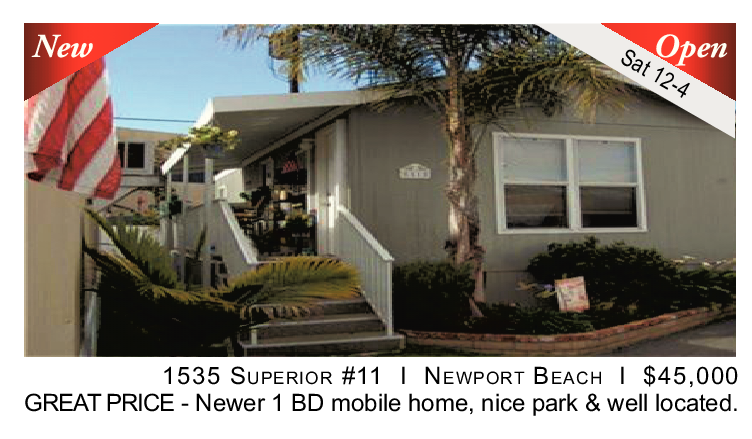 1535 SUPERIOR #11 I NEWPORT BEACH I $45,000 GREAT PRICE - Newer 1 BD mobile home, nice park & well located.