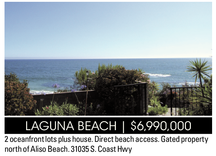 2 oceanfront lots plus house. Direct beach access. Gated property north of Aliso Beach. 31035 S. Coast Hwy