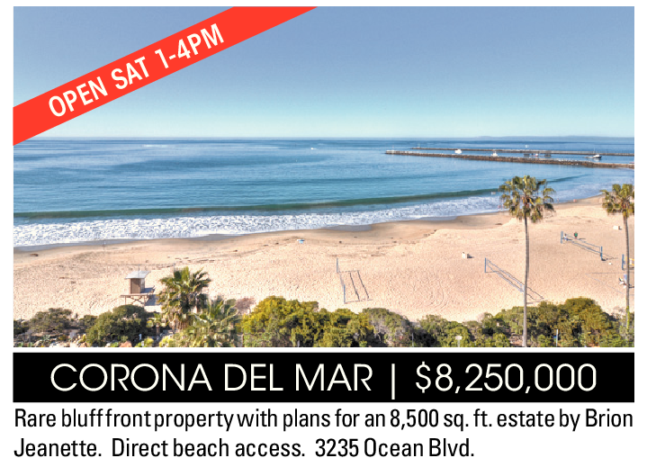 Rare bluff front property with plans for an 8,500 sq. ft. estate by Brion Jeanette. Direct beach access. 3235 Ocean Blvd.
