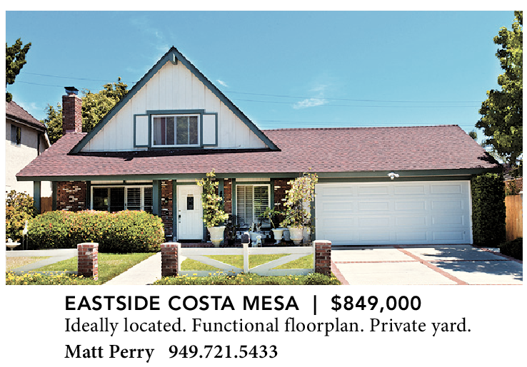 EASTSIDE COSTA MESA | $849,000 Ideally located. Functional floorplan. Private yard. Matt Perry 949.721.5433