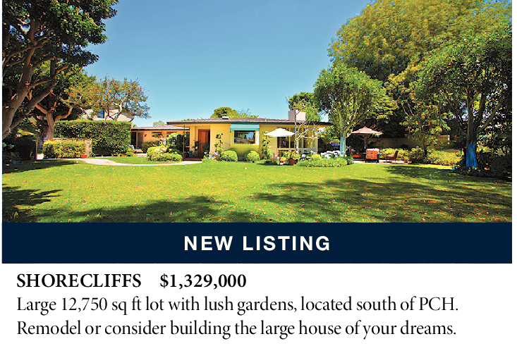 SHORECLIFFS $1,329,000 Large 12,750 sq ft lot with lush gardens, located south of PCH. Remodel or consider building the large house of your dreams.