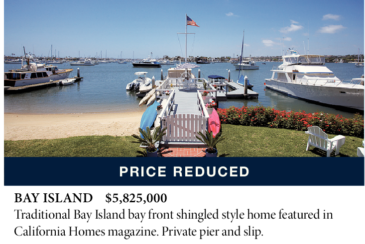 BAY ISLAND $5,825,000 Traditional Bay Island bay front shingled style home featured in California Homes magazine. Private pier and slip.