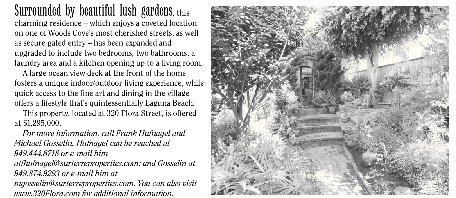 For more information, call Frank Hufnagel and Michael Gosselin. Hufnagel can be reached at 949.444.8718 or e-mail him atfhufnagel@surterreproperties.com; and Gosselin at 949.874.9293 or e-mail him at mgosselin@surterreproperties.com. You can also visit www.320Flora.com for additional information.