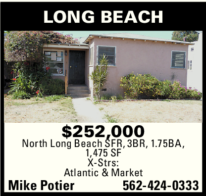 $252,000 North Long Beach SFR, 3BR, 1.75BA, 1,475 SF X-Strs: