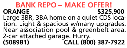 ORANGE $325,900 Large 3BR, 3BA home on a quiet CDS location. Light & spacious w/many upgrades.