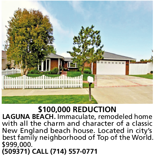 $100,000 REDUCTION LAGUNA BEACH. Immaculate, remodeled home with all the charm and character of a classic New England beach house. Located in city’s best family neighborhood of Top of the World. $999,000. (509371) CALL (714) 557-0771