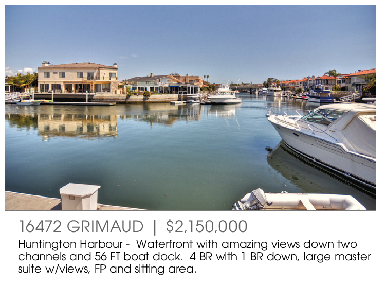 16472 GRIMAUD | $2,150,000 Huntington Harbour - Waterfront with amazing views down two channels and 56 FT boat dock. 4 BR with 1 BR down, large master suite w/views, FP and sitting area.