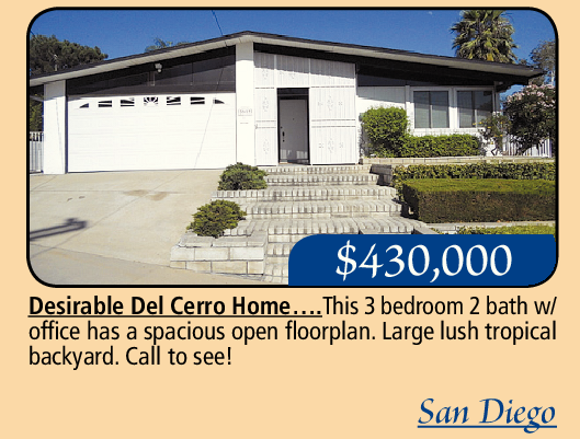 Desirable Del Cerro Home….This 3 bedroom 2 bath w/ office has a spacious open floorplan. Large lush tropical backyard. Call to see!