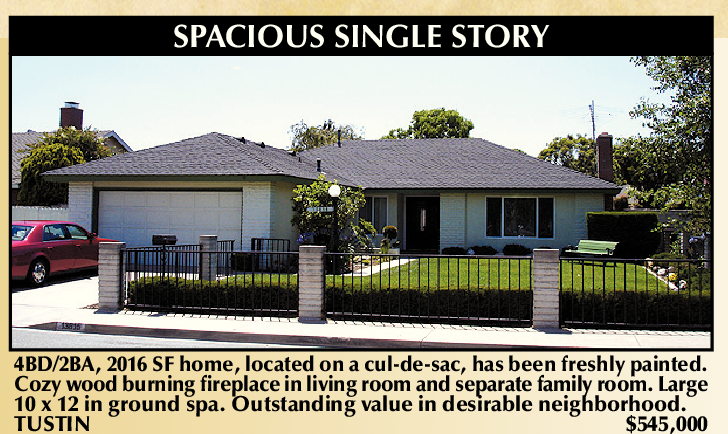 SPACIOUS SINGLE STORY 4BD/2BA, 2016 SF home, located on a cul-de-sac, has been freshly painted. Cozy wood burning fireplace in living room and separate family room. Large 10 x 12 in ground spa. Outstanding value in desirable neighborhood. TUSTIN $545,000