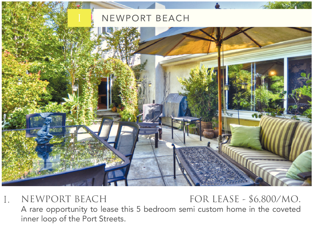 I . NEWPORT BEACH FOR LEASE - $6,800/MO.