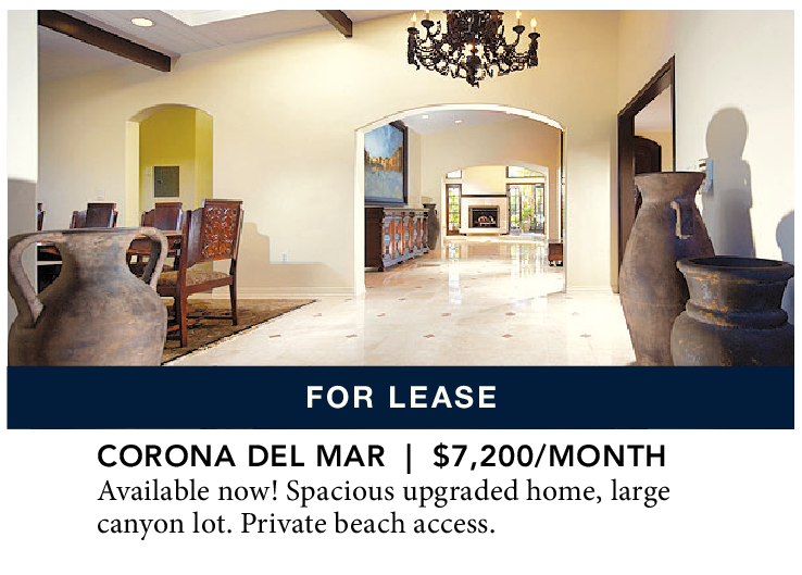 CORONA DEL MAR | $7,200/MONTH Available now! Spacious upgraded home, large canyon lot. Private beach access.