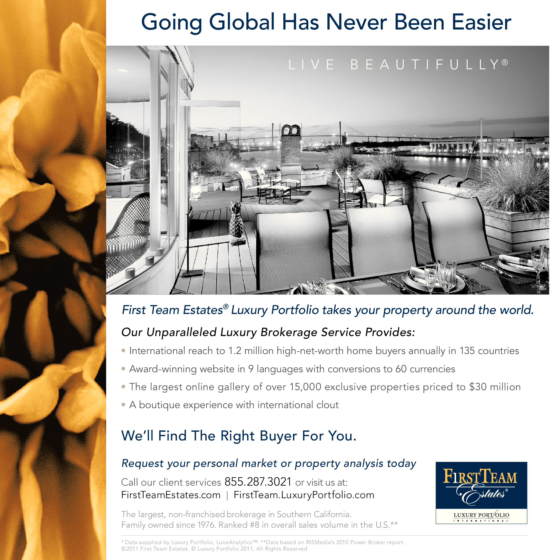 * Data supplied by Luxury Portfolio, LuxeAnalytics™. **Data based on RISMedia’s 2010 Power Broker report. ©2011 First Team Estates. © Luxury Portfolio 2011. All Rights Reserved