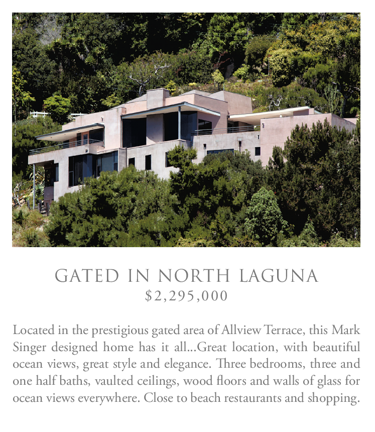 Located in the prestigious gated area of Allview Terrace, this Mark Singer designed home has it all...Great location, with beautiful ocean views, great style and elegance. Three bedrooms, three and one half baths, vaulted ceilings, wood floors and walls of glass for ocean views everywhere. Close to beach restaurants and shopping.