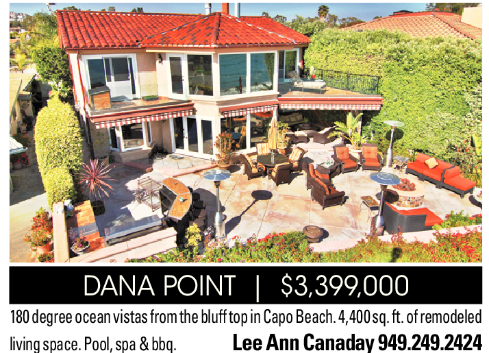 180 degree ocean vistas from the bluff top in Capo Beach. 4,400 sq. ft. of remodeled living space. Pool, spa & bbq. Lee Ann Canaday 949.249.2424