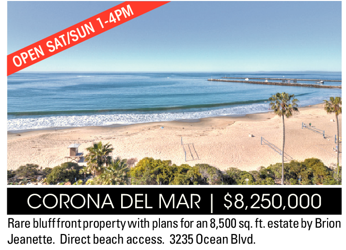 Rare bluff front property with plans for an 8,500 sq. ft. estate by Brion Jeanette. Direct beach access. 3235 Ocean Blvd.