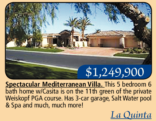 Spectacular Mediterranean Villa. This 5 bedroom 6 bath home w/Casita is on the 11th green of the private Weiskopf PGA course. Has 3-car garage, Salt Water pool & Spa and much, much more!