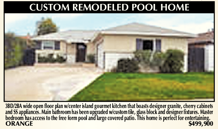 3BD/2BA wide open floor plan w/center island gourmet kitchen that boasts designer granite, cherry cabinets and SS appliances. Main bathroom has been upgraded w/custom tile, glass block and designer fixtures. Master bedroom has access to the free form pool and large covered patio. This home is perfect for entertaining. ORANGE $499,900
