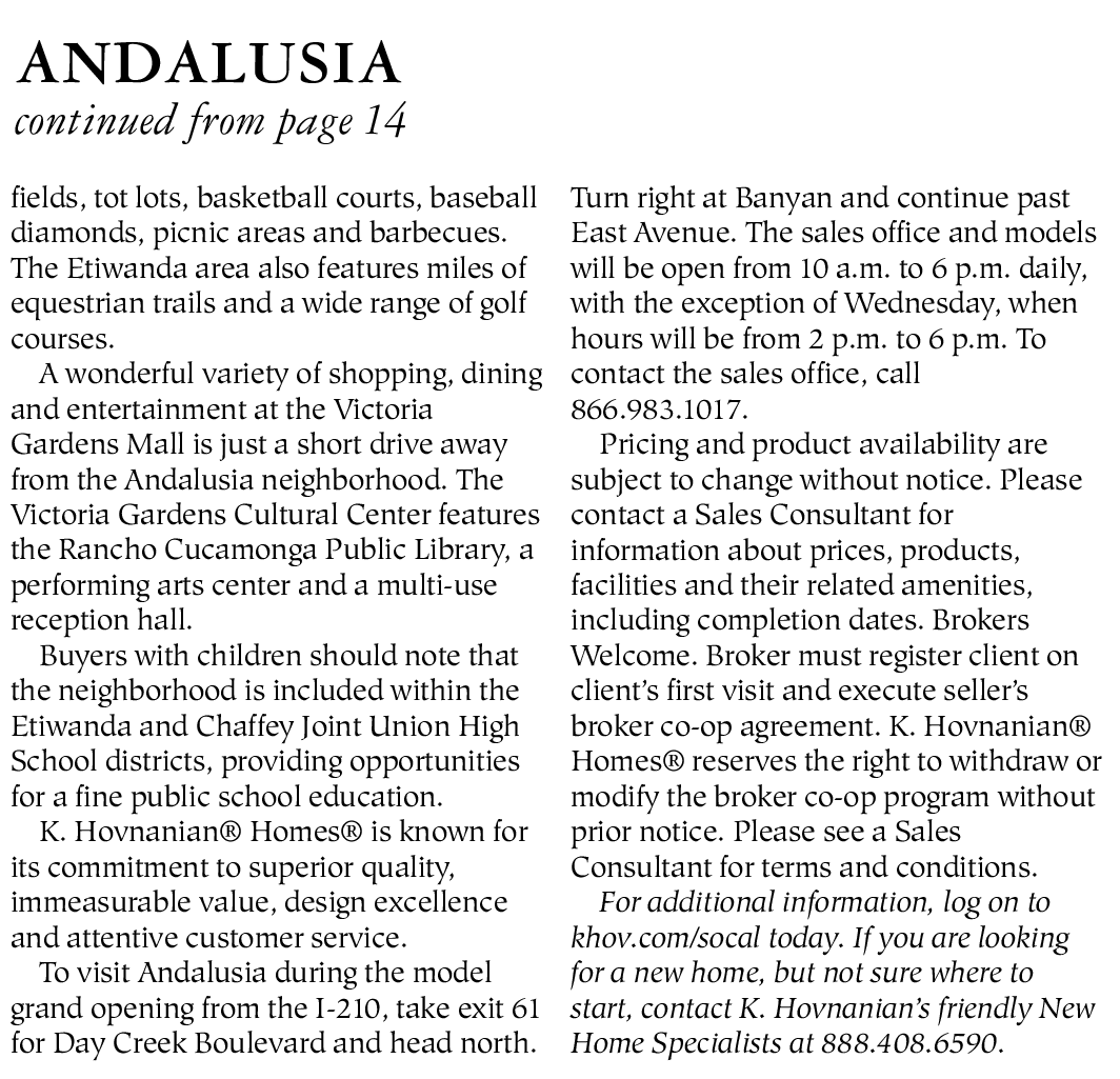 For additional information, log on to khov.com/socal today. If you are looking for a new home, but not sure where to start, contact K. Hovnanian’s friendly New Home Specialists at 888.408.6590.