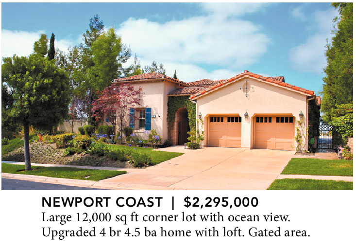 NEWPORT COAST | $2,295,000 Large 12,000 sq ft corner lot with ocean view. Upgraded 4 br 4.5 ba home with loft. Gated area.