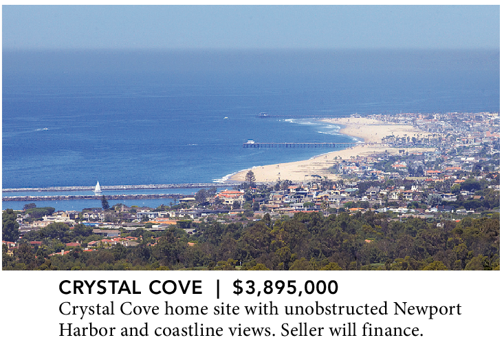 CRYSTAL COVE | $3,895,000 Crystal Cove home site with unobstructed Newport Harbor and coastline views. Seller will finance.