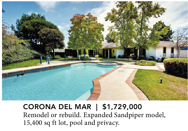 CORONA DEL MAR | $1,729,000 Remodel or rebuild. Expanded Sandpiper model, 15,400 sq ft lot, pool and privacy.