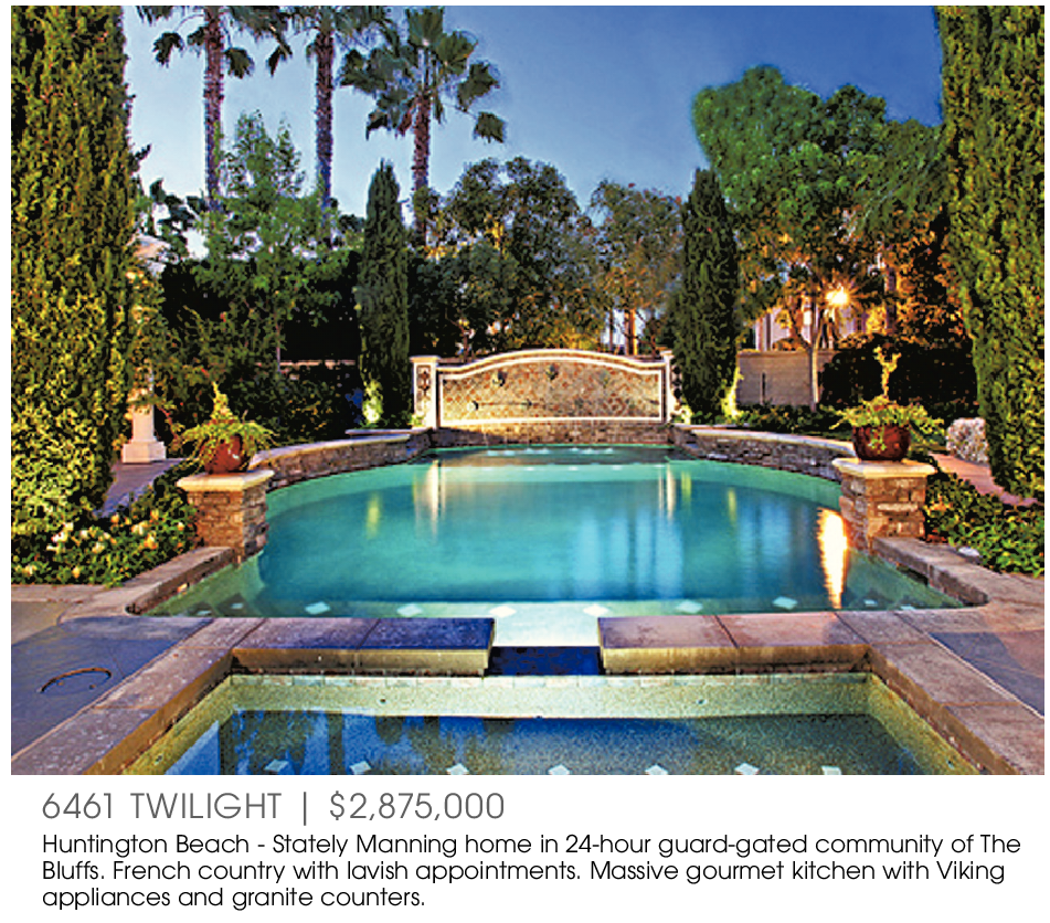 6461 TWILIGHT | $2,875,000 Huntington Beach - Stately Manning home in 24-hour guard-gated community of The Bluffs. French country with lavish appointments. Massive gourmet kitchen with Viking appliances and granite counters.
