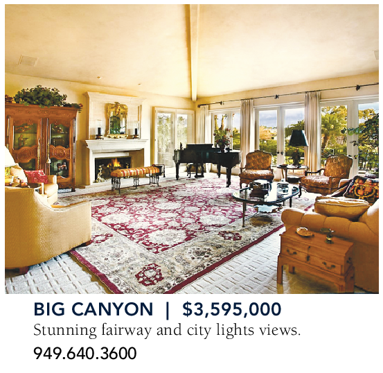 BIG CANYON | $3,595,000 Stunning fairway and city lights views. 949.640.3600