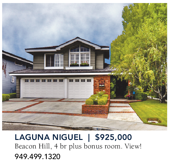 LAGUNA NIGUEL | $925,000 Beacon Hill, 4 br plus bonus room. View! 949.499.1320