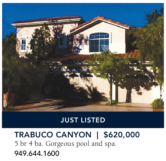 TRABUCO CANYON | $620,000 5 br 4 ba. Gorgeous pool and spa. 949.644.1600