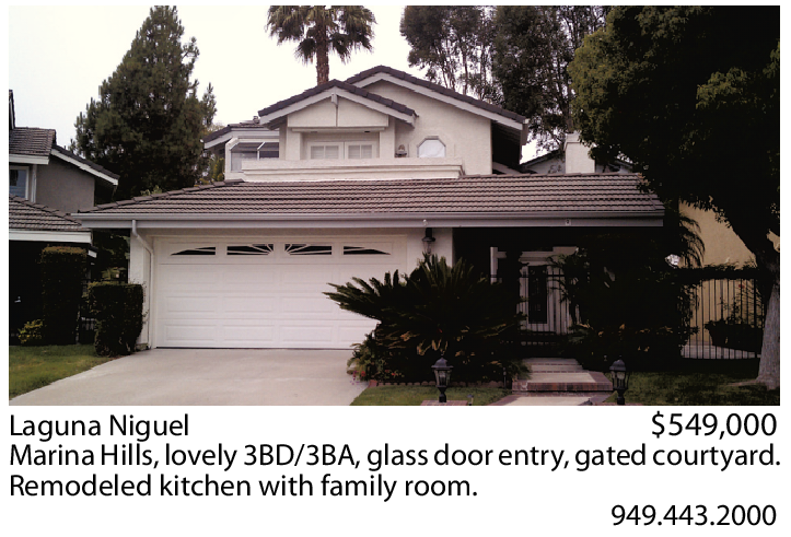 Laguna Niguel $549,000 Marina Hills, lovely 3BD/3BA, glass door entry, gated courtyard. Remodeled kitchen with family room.