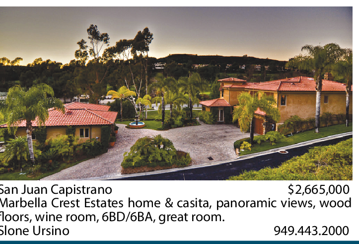 San Juan Capistrano $2,665,000 Marbella Crest Estates home & casita, panoramic views, wood floors, wine room, 6BD/6BA, great room. Slone Ursino 949.443.2000