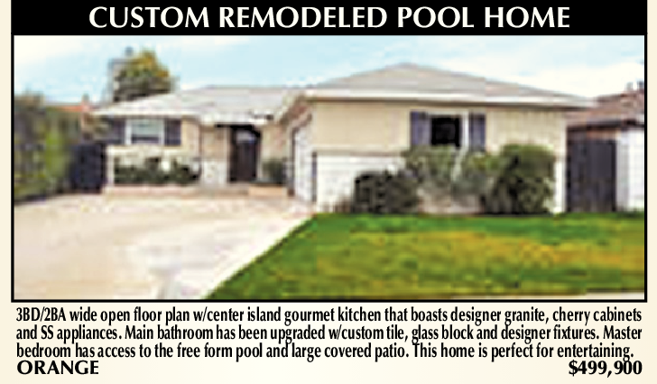 CUSTOM REMODELED POOL HOME 3BD/2BA wide open floor plan w/center island gourmet kitchen that boasts designer granite, cherry cabinets and SS appliances. Main bathroom has been upgraded w/custom tile, glass block and designer fixtures. Master bedroom has access to the free form pool and large covered patio. This home is perfect for entertaining. ORANGE $499,900