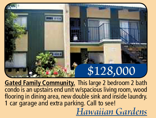 Gated Family Community. This large 2 bedroom 2 bath condo is an upstairs end unit w/spacious living room, wood flooring in dining area, new double sink and inside laundry. 1 car garage and extra parking. Call to see!