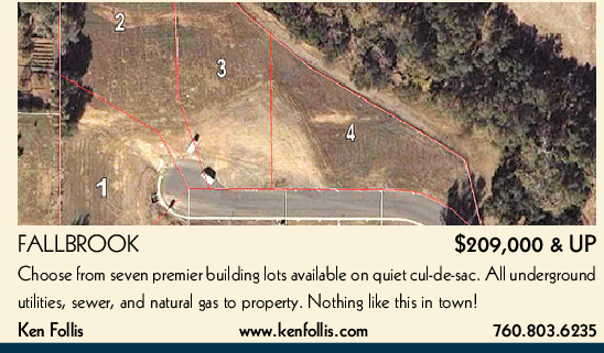 FALLBROOK $209,000 & UP Choose from seven premier building lots available on quiet cul-de-sac. All underground utilities, sewer, and natural gas to property. Nothing like this in town!