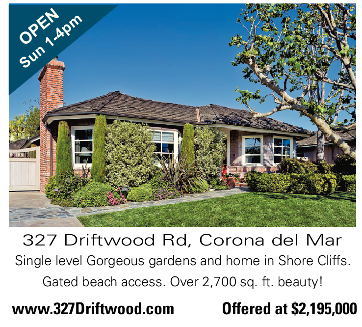 327 Driftwood Rd, Corona del Mar Single level Gorgeous gardens and home in Shore Cliffs. Gated beach access. Over 2,700 sq. ft. beauty!