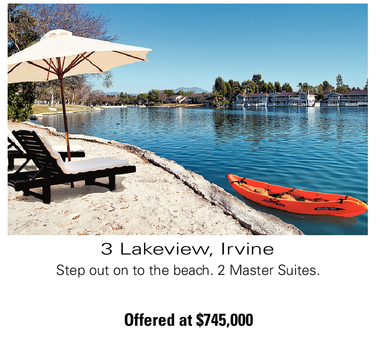 3 Lakeview, Irvine Step out on to the beach. 2 Master Suites.