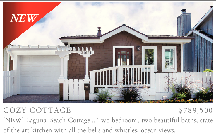 COZY COTTAGE $789,500 ‘NEW’ Laguna Beach Cottage... Two bedroom, two beautiful baths, state of the art kitchen with all the bells and whistles, ocean views.