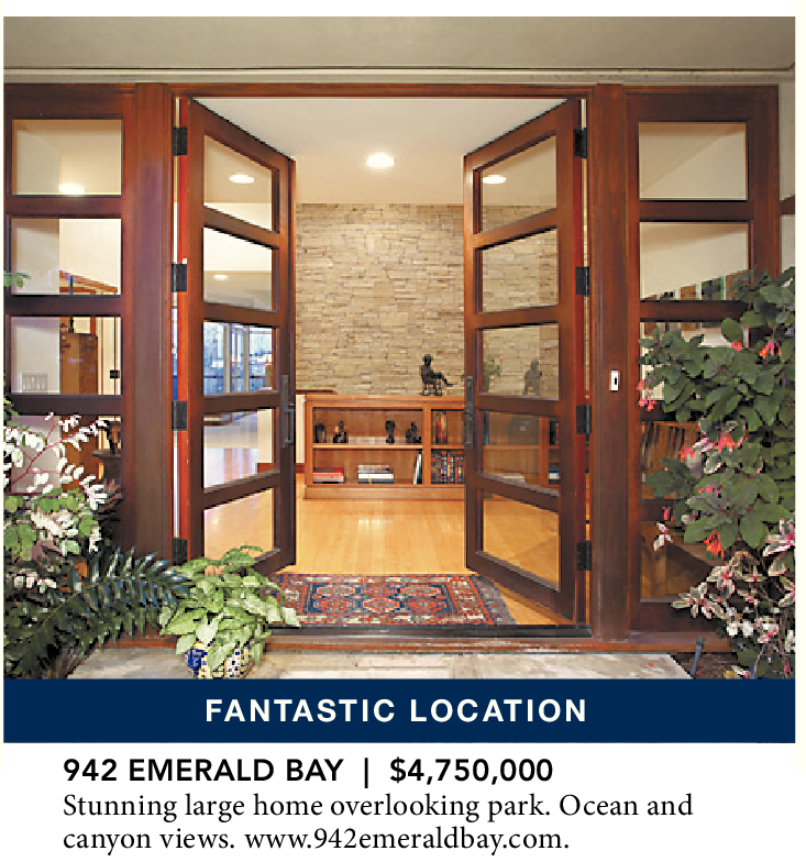 942 EMERALD BAY | $4,750,000 Stunning large home overlooking park. Ocean and canyon views. www.942emeraldbay.com.
