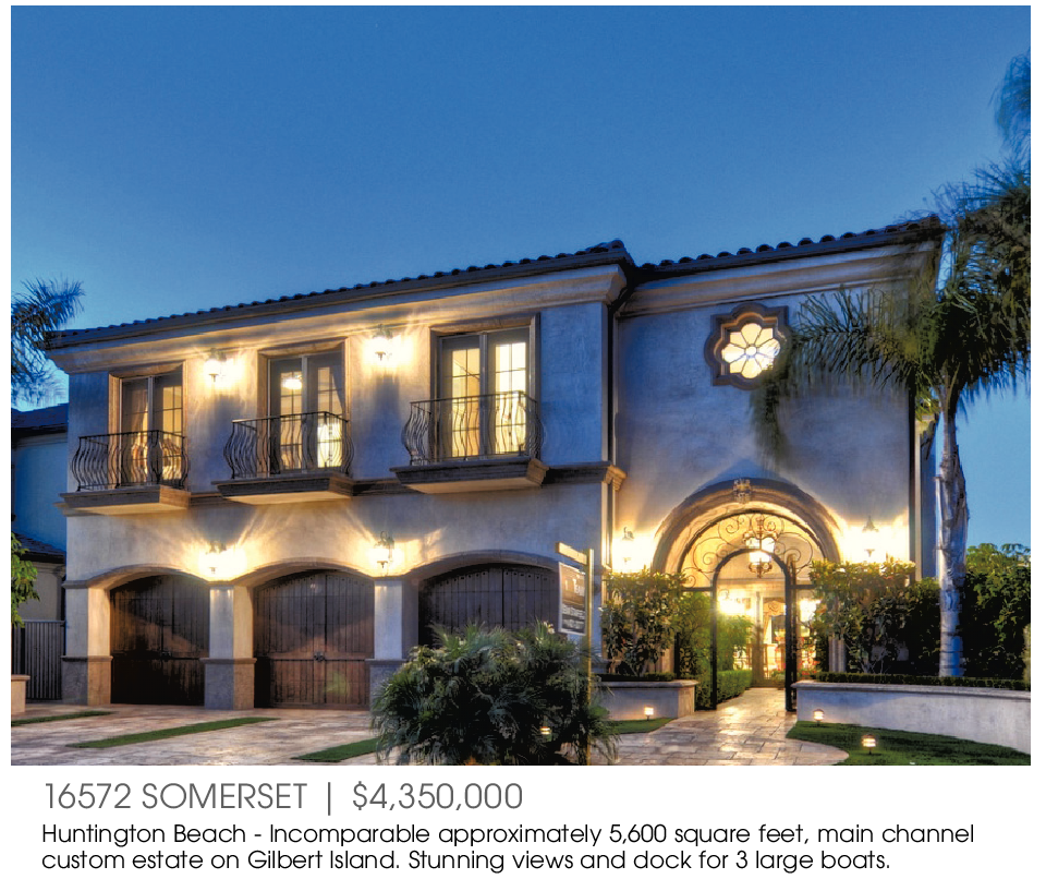 16572 SOMERSET | $4,350,000 Huntington Beach - Incomparable approximately 5,600 square feet, main channel custom estate on Gilbert Island. Stunning views and dock for 3 large boats.