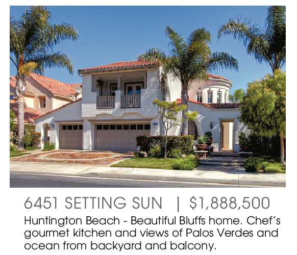 6451 SETTING SUN | $1,888,500 Huntington Beach - Beautiful Bluffs home. Chef’s gourmet kitchen and views of Palos Verdes and ocean from backyard and balcony.