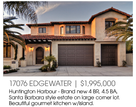 17076 EDGEWATER | $1,995,000 Huntington Harbour - Brand new 4 BR, 4.5 BA, Santa Barbara style estate on large corner lot. Beautiful gourmet kitchen w/island.