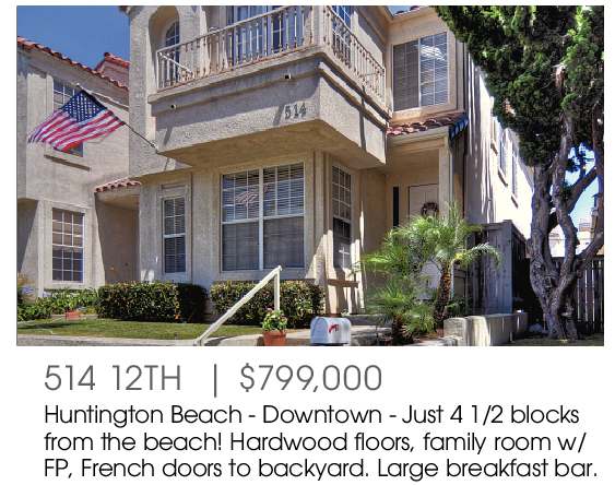 514 12TH | $799,000 Huntington Beach - Downtown - Just 4 1/2 blocks from the beach! Hardwood floors, family room w/ FP, French doors to backyard. Large breakfast bar.