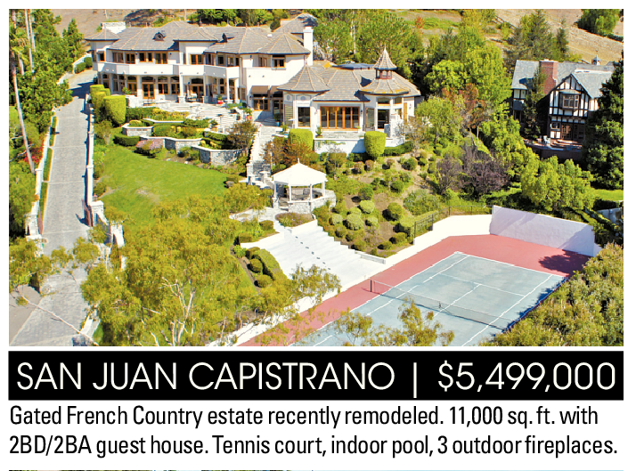 Gated French Country estate recently remodeled. 11,000 sq. ft. with 2BD/2BA guest house. Tennis court, indoor pool, 3 outdoor fireplaces.